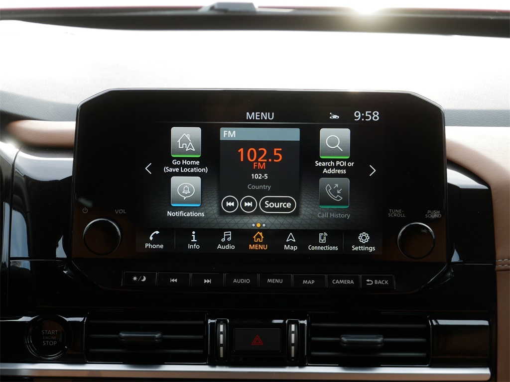 Scarlet Ember Tintcoat **ADAPTIVE CRUISE CONTROL**, **360 DEGREE CAMERA**, **APPLE CAR PLAY**, **ANDROID AUTO**, **NAVIGATION**, **REMOTE START**, **HEATED STEERING WHEEL**, **HEATED SEATS**, **COOLED SEATS**, **LEATHER**, **POWER DRIVERS SEAT**, **DUAL CLIMATE CONTROLS**, **STEERING WHEEL RADIO CONTROLS**, **TOUCH SCREEN**, **SUNROOF**, **POWER LIFT GATE**, **ALLOY WHEELS**, **4 WHEEL DRIVE**, **AUTOMATIC TRANSMISSION**, 4WD, Black Appearance Package, Black Grille, Black Liftgate Emblems, Cargo Area Protector, Cargo Net, Cargo Package, First Aid, Navigation system: NissanConnect with Navigation and Services.