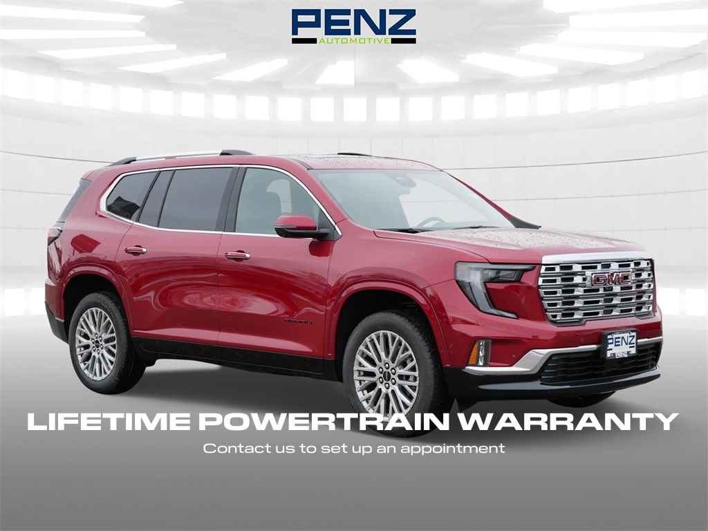 === LIFETIME POWERTRAIN WARRANTY === 107-Point SAFETY INSPECTION & Comes with a Lifetime Powertrain Warranty === that Covers the Essential Powertrain Components: Engine, Transmission, Gaskets and Seals. Even Better Yet?! This Vehicle also Comes with a Complimentary CARFAX History Report & With our 7-DAY RETURN POLICY you Literally Cannot buy the Wrong Car! ** Love What You Drive ** with Peace of Mind... PLUS 1-YEAR of FREE MAINTENANCE!! ===. Volcanic Red Tintcoat 2026 GMC Acadia Denali AWD 8-Speed Automatic 2.5L DOHC **BLIND SPOT MONITOR**, **ADAPTIVE CRUISE CONTROL**, **360 DEGREE CAMERA**, **APPLE CAR PLAY**, **ANDROID AUTO**, **NAVIGATION**, **REMOTE START**, **HEATED STEERING WHEEL**, **HEATED SEATS**, **COOLED SEATS**, **LEATHER**, **POWER DRIVERS SEAT**, **DUAL CLIMATE CONTROLS**, **STEERING WHEEL RADIO CONTROLS**, **ALLOY WHEELS**, **ALL WHEEL DRIVE**, **AUTOMATIC TRANSMISSION**, AWD, H6y Leather, Memory Package, Navigation System.
